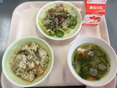 今日は、6年3組の最優秀献立が給食に出ました。沢野ごぼうや能登白ねぎなどの地場産物を炊き込みご飯で丸ごと美味しく味わえる素敵な献立です。子ども達からも「シャキのりサラダが一番美味しかった!」「6年生ってすごいね!」と喜ぶ声があがっていました。