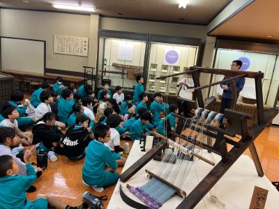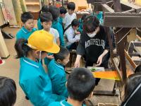 白山ろく民族資料館では、白峰地区の人々が昔どのような暮らしをしていたのか、たくさんの展示を通して詳しく知ることができました。牛首紬白山工房では、初めて見る機織り機に、子どもたちは興味津々。