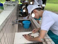 9月9日(土)、朝6:30から、「加賀能美 掃除に学ぶ会」の皆さんが、3階東トイレの掃除をしてくださいました。素手で便器も床も扉も鏡も磨いてくださり、ピカピカになりました。