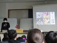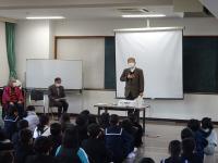 5年生の子どもたちが、てらかつ協議会の方から、てらいまち活性化の取り組み「ボラードに九谷焼陶板を設置する」の始まりや取り組みへの思いなどについて、お話をお聞きしました。