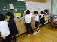 1年生が、秋のものを使ってお店屋さんを開きました。お客さんは、1年生のお友達と級外の先生方です。お客さんに楽しんでもらえるようにと、おもちゃやルール、お店の看板や説明の内容など、試しては直し、1年生なりに試行錯誤を重ねました。当日は、自信を持ってお店屋さんの店員を努めていた子ども達。たくさんのお客さんが来てくれ、楽しんでもらえて子ども達も大満足顔でした。
