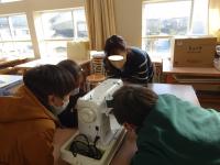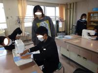 5年生が家庭科でミシンの学習を行いました。学校運営協議会 コミュニティ・スクールディレクターの高田さんにご協力いただき、学習サポータの方を募っていただきました。各クラス2時間の学習に、合わせて10名の方が来てくださいました。
