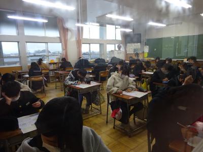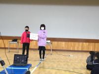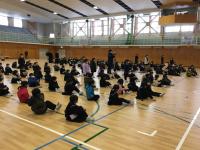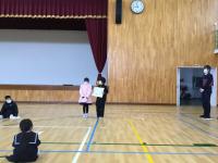 2学期の終業式は、1年生・6年生が寺井体育館に集まり、他の学年は教室でリモートで行いました。吹雪でとても寒い日でしたが、6年生はさすがで立派な姿勢と態度でした。