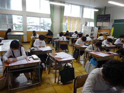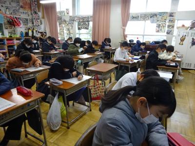 学期末のテストに真剣に取り組んでいる子ども達。この時期は、1日に何枚もテストがあることもあります。「先生、漢字50問テスト100点やった!」と報告に来てくれる子もいます。そんな時は、「あなたがテストに向けて精一杯取り組んできたからだね。」等と声をかけています。