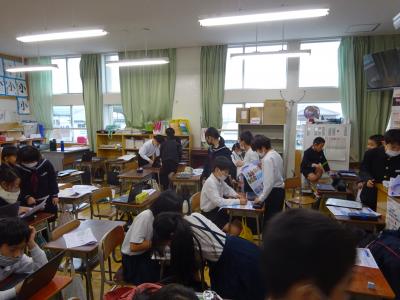 総合的な学習の時間に、寺井町のよさについて考えている6年生は、活躍している寺井町の人々について調べ、お話をお聞きしたい人を自分たちで選びました。