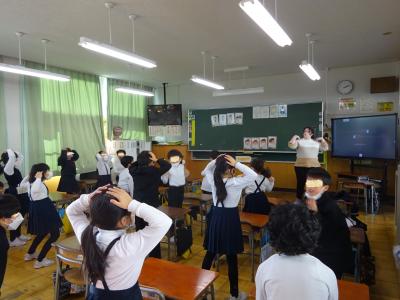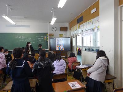 3学期初めてのキャサリン先生と外国語活動の学習をした2年生。