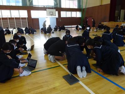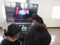 自分たちの踊りを録画し、チェック。校内放送で全校に見てもらう予定です。