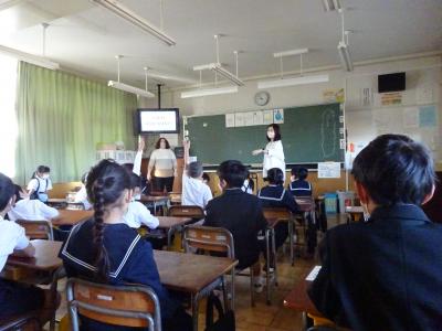 ALTとして新しくキャサリン先生が、1年生、2年生の外国語活動を教えてくださることになりました。子どもが大好きなキャサリン先生と、元気いっぱい楽しく学習しています。
