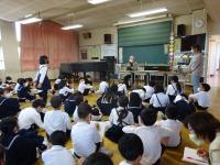 3年生が総合的な学習の時間に調べてきた地域の民話についてさらに深めようと、地域の先生である松村さん、北野さんから、民話「あやめ姫」に出てくる言葉についてや、民話「かっぱ合戦」の舞台である八丁川の昔の様子や暮らしについて教えていただきました。一生懸命メモをとり、話を聞いた子ども達が今後、どのように興味を広げ学習を進めていくのか楽しみです。