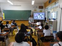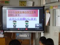 4年生が、総合的な学習の時間に、金沢市立緑小学校とオンライン交流を行いました。寺井小学校の4年生は九谷焼について、緑小学校の4年生は加賀友禅について、お互いに調べてきたことをプレゼンなどにまとめ、伝えあいました。
