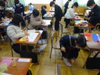 その後、各教室では、心を落ち着け、集中して書初めの会が行われました。子ども達のやる気いっぱいの姿で、よい3学期のスタートを切ることができました。