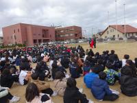 2学期の終業式は、1年生・6年生が寺井体育館に集まり、他の学年は教室でリモートで行いました。吹雪でとても寒い日でしたが、6年生はさすがで立派な姿勢と態度でした。