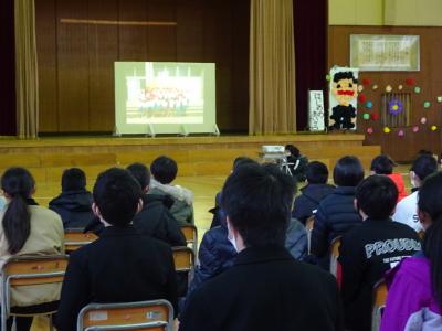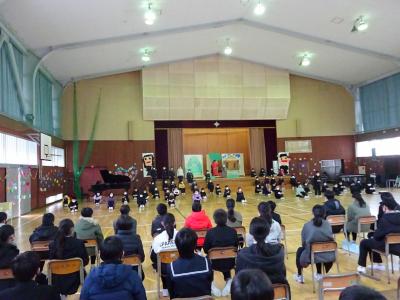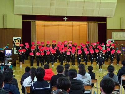 2月16日、雪が降りしきる中、換気を行いながら「6年生を送る会」が行われました。寒い体育館でしたが、子ども達の「思い」がつまった発表で、心がジーンと温かくなりました。