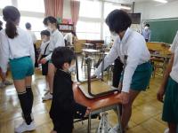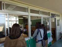 丁寧に、体育館入り口に置いて教室へ向かいました。