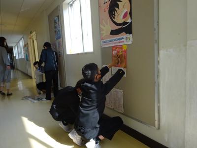 「全校で協力してやってるって感じがします。」「貼るのは大変だけど、みんなでやって増えていくのが嬉しい。」「児童会役員じゃない人も手伝ってくれて、それが嬉しいです。」など、すてきなコメントが返ってきました。