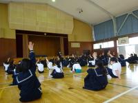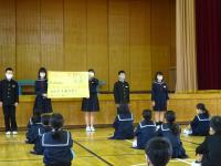 任命集会で児童会役員から、児童会目標のお知らせがありました。