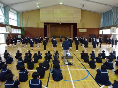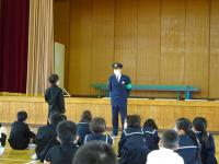 東出先生から、冬休みの生活について、赤、白、黄色、赤白、黒白と色ごとに注意すること、大切なことのお話、中嶋先生から、オミクロン株、感染対策についてのお話がありました。