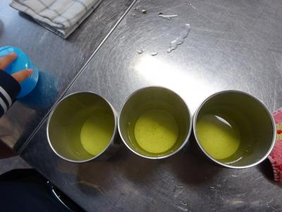 同じ色のお茶がちゃんと出来上がりました。自分で入れたお茶を味わった後、「あっつ!」「苦い!」「おいしい!」「いい香り!!」などの感想が、マスクの下から聞かれました。