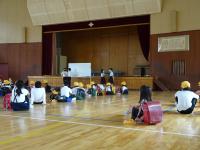 5月13日、令和4年度第1回地区子ども会が開かれ、1年生に地区会長・副会長・書記が紹介されました。4月からの集団登校で毎日顔なじみになっているものの、「名前知らん」という1年生がほとんど。「〇〇さん」と名前を呼ぶ練習をしていました。