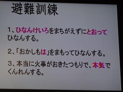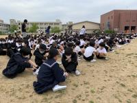 運動場に全員が無事避難することができました。運動場では、めあてについてもう一度ふりかえり、3つのめあてをしっかり意識して訓練ができたとほとんどの人が手を挙げていました。担当の先生や消防署の方、校長先生の話もしっかり聞いて、本気で真剣に取り組んだ寺井っ子達。災害時に放送や指示を静かに聞くことは、落ち着いて安全な行動をとることにつながります。