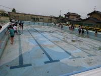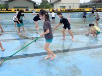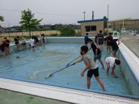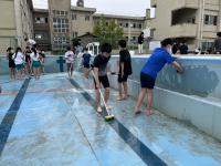 5月20日、6年生がプール掃除をしました。はじめは、どろや砂で汚れていたプールを「全校児童が気持ちよく楽しくプールの学習ができるように」と、一生懸命ブラシで床や壁を磨いてくれました。