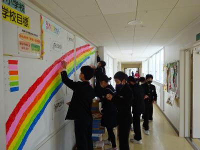 人権週間に合わせて、児童会が考えた「思いやりの虹をかけよう」の取り組みが進み、もうすぐ虹が完成します!