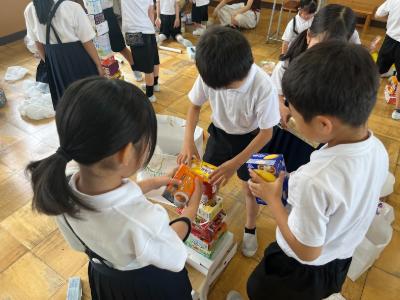 算数の「いろいろなかたち」の学習で、私たちは「どの箱が一番積みやすいか」という面白い実験をしました。グループで協力しながら、お菓子の箱や空き缶など、様々な形の箱を実際に積み上げてみました。