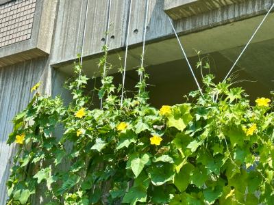 1つだけですが、ヘチマの実もできています。近くに来る機会があれば、ぜひ探して、見つけてみてくださいね。