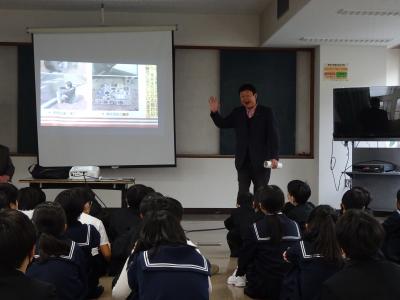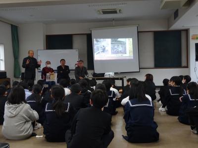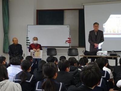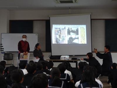 5年生が、てらかつ協議会の方から、能美東西連絡道路のボラードに置される陶板づくりの説明やてらかつ協議会の活動への思いなどをお聞きしました。