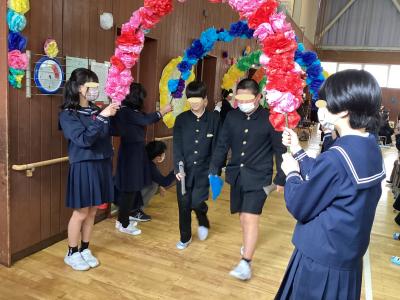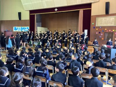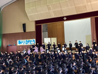 2月15日、4年ぶりに全校児童が集い、お世話になった地域の方をお招きして6年生を送る会を行いました。