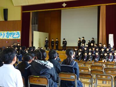 2月14日、今年度最後の授業参観で、6年生を送る会のリハーサルを見ていただきました。どの学年もこれまでの練習の中で1番の出来栄えでした。おうちでたくさん褒めてあげてほしいと思います。