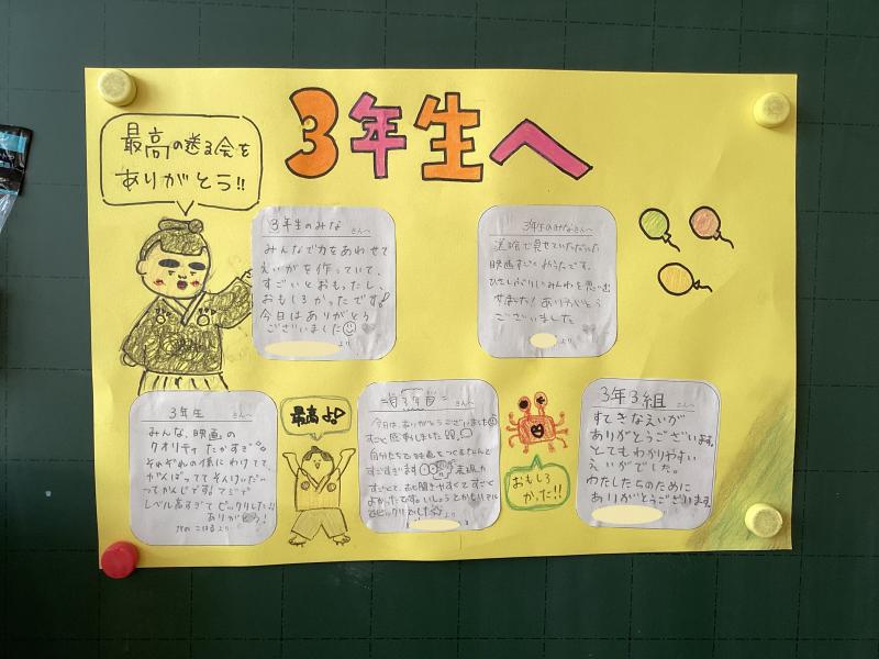 教室に戻った6年生は、「泣きそうやった!」等の感想があったそうです。また、会の後には、6年生から各クラスへ感謝のメッセージが届けられました。