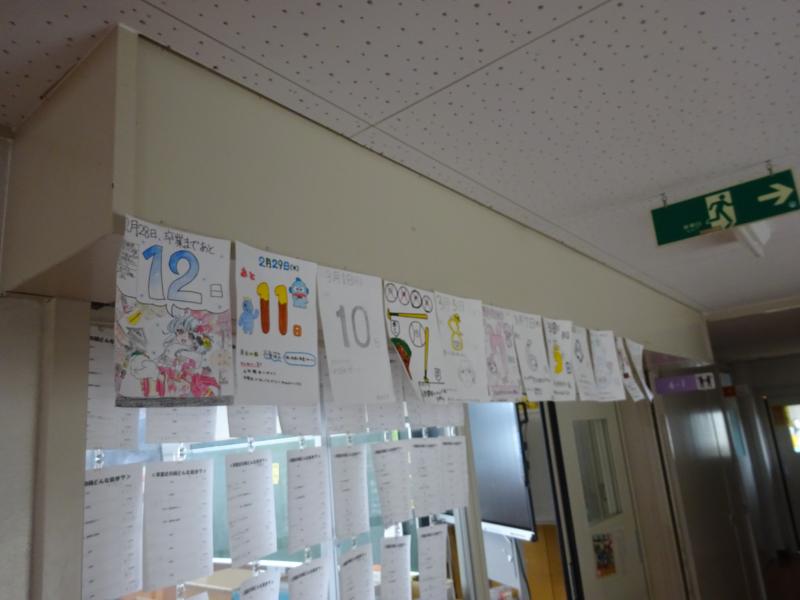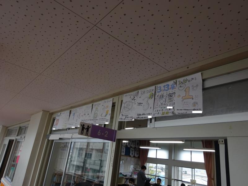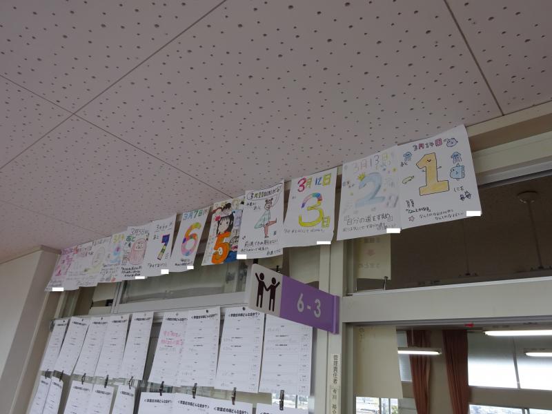 6年生を送る会も終わり、6年生には「卒業」が日に日に迫ってきています。残り僅かな小学校生活で、さらに成長していきたいとの思いを持ち、目標を立てて日々を過ごす6年生。廊下には、クラスで分担して書いた「カントダウンカレンダー」が飾られています。