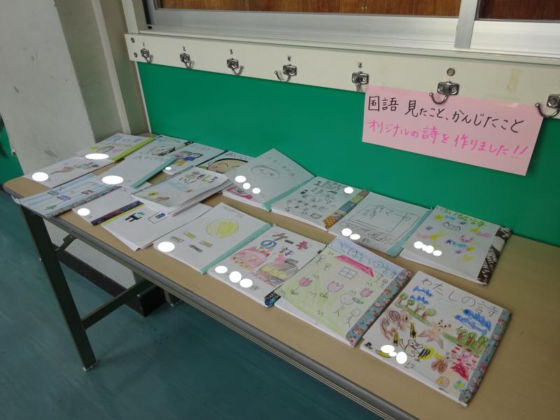 2年生が国語科の学習で、詩の面白さを学び、自分で詩をつくり、詩集にまとめました。休み時間に廊下を通ると、「先生! 見て! ぼくのこれ!」と次々に見せてくれました。詩も絵も子どもらしさがいっぱいで、思わず笑顔になります。