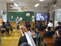 4年生が、寺井地区の小学校とオンラインで交流しました。他の学校が、寺井小学校と同じく150周年を迎えたことや、絶滅危惧種のトミヨを育てていること等を知りました。また、どの学校も楽しそうで「行ってみたいな」「中学で一緒になるのが楽しみ」などの感想を持っていました。