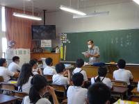 4年生は、遠足実行委員が中心となり準備を進めてきました。密を避け、みんなで楽しむために考えたゲームの紹介や注意すること等、実行委員が前に出て遠足の集会を進めました。