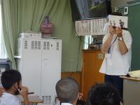 7月15日は、低学年へ1学期最後の図書ボランティアの方による読み聞かせの時間です。朝、玄関前で植物に水やりしながら水遊びをしている子ども達に、「今日は、図書ボランティアさんの読み聞かせだよ。」と声をかけると、「えっ、そうなん。早く行こう!」と一目散に玄関へ行きました。子ども達が、毎回楽しみにしていることがわる出来事でした。
