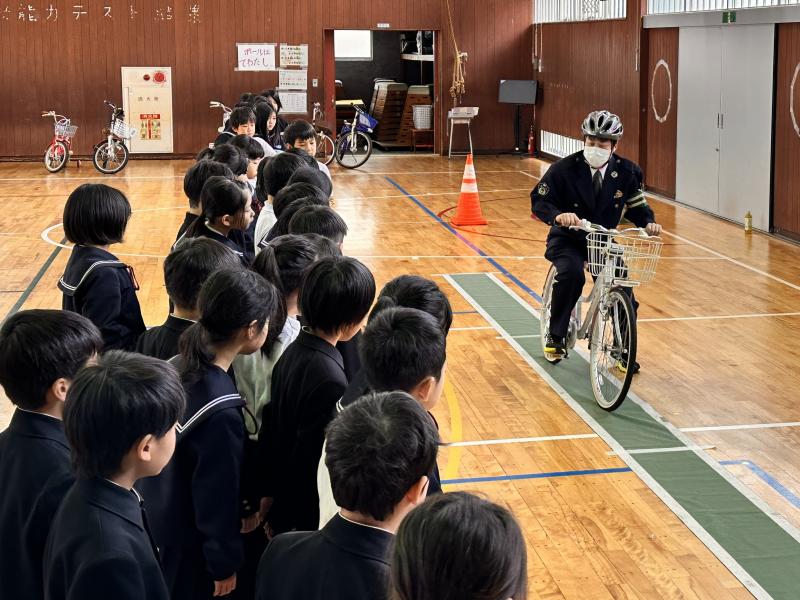 能美警あの察署員さん、市交通推進隊のみなさんをお招きして、自転車の乗り方教室を行いました。自分の命を守るために守るべきルールや気をつけることについて教わりました。