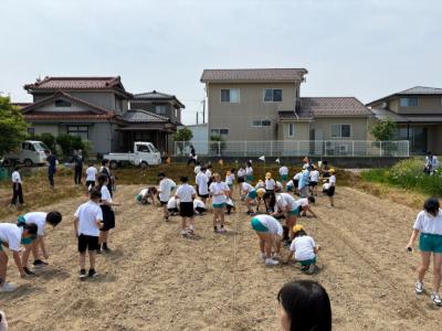 総合の学習でJAの皆さんと、末信の田中さんの力をお借りして種まきを行いました。