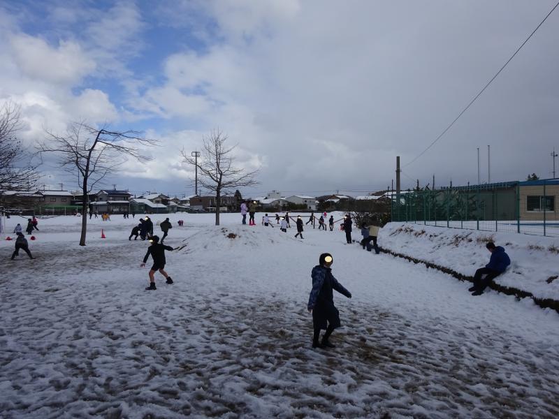 雪が降った日の昼休み、運動場にはたくさんの子ども達の姿が!元気いっぱいに冬を体感しています。