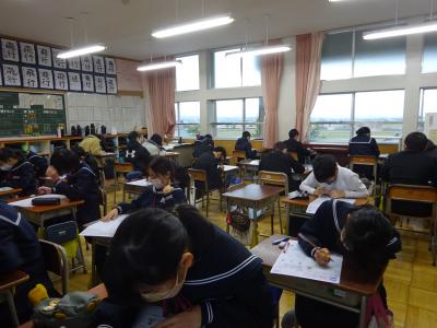 学期末のテストに真剣に取り組んでいる子ども達。この時期は、1日に何枚もテストがあることもあります。「先生、漢字50問テスト100点やった!」と報告に来てくれる子もいます。そんな時は、「あなたがテストに向けて精一杯取り組んできたからだね。」等と声をかけています。