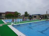 今年度は、大小プールを合わせ、1授業に3クラスの入水が可能となり、子ども達の水泳学習を充実したい、その思いが天にも届いいているようで、梅雨入りしても雨が降らず、水泳学習を行うことができています。