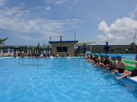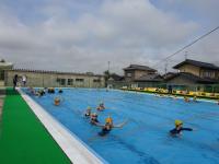 プール開きに先立ち、3年ぶりの夏休みプール解放時に見守りのご協力を頂く1年生保護者の皆様も交え、根上消防署員の方を講師に、救急蘇生法講習会を行いました。