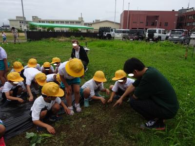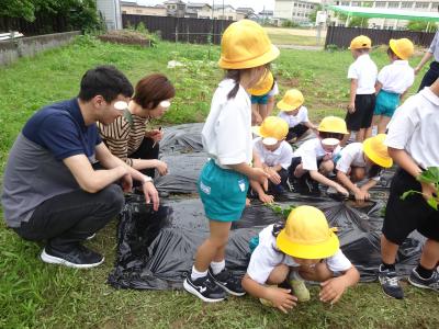 今年は、学校の畑を国際交流協会の方と一緒に使っているので、トビアスさん、コウイさん、イサさんがお手伝いに来てくださいました。