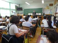 3年生が総合的な学習の時間に調べてきた地域の民話についてさらに深めようと、地域の先生である松村さん、北野さんから、民話「あやめ姫」に出てくる言葉についてや、民話「かっぱ合戦」の舞台である八丁川の昔の様子や暮らしについて教えていただきました。一生懸命メモをとり、話を聞いた子ども達が今後、どのように興味を広げ学習を進めていくのか楽しみです。