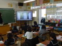 1年生が生活科で、昔遊びに挑戦します。この日は、家に持ち帰ったクロームブックで、家の人と一緒にしている昔あそびの様子をビデオ撮影してきたものをクラスのみんなで見合っていました。録画のバックに音楽を流して、ユーチューブ動画のようにしてビデオ撮影した動画もあり、ご家族で楽しみながら取り組んでくださっている様子が伝わっていきました。