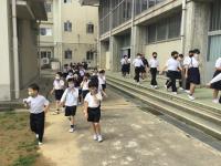 運動場での話の聴き方も、とても立派で感心しました。訓練の様子を見ていただいた消防士の方から、「全員けがなく避難できたので100点です。とても落ち着いて避難できました。」と、言っていただけました。