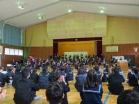 密を避け2学年ずつ体育館に来た児童は、堂々とした迫力ある演奏に聞き入りました。特に自分達も経験者で先輩である5年生、6年生は、要所要所で拍手をして温かい気持ちで演奏を盛り上げてくれました。最後に演奏を聞いた3年生に、寺井小学校の素晴らしい伝統が引き継がれました。