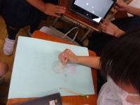 3年生が図工の学習に夢中になって取り組んでいました。光を通すと夏らしくとても素敵です。家に持ち帰ったらぜひ、窓辺に飾ってあげてください。