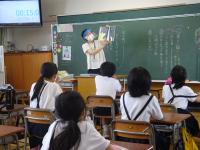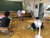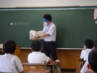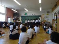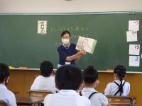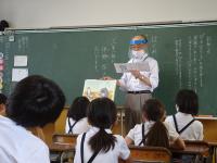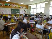 7月15日は、低学年へ1学期最後の図書ボランティアの方による読み聞かせの時間です。朝、玄関前で植物に水やりしながら水遊びをしている子ども達に、「今日は、図書ボランティアさんの読み聞かせだよ。」と声をかけると、「えっ、そうなん。早く行こう!」と一目散に玄関へ行きました。子ども達が、毎回楽しみにしていることがわる出来事でした。